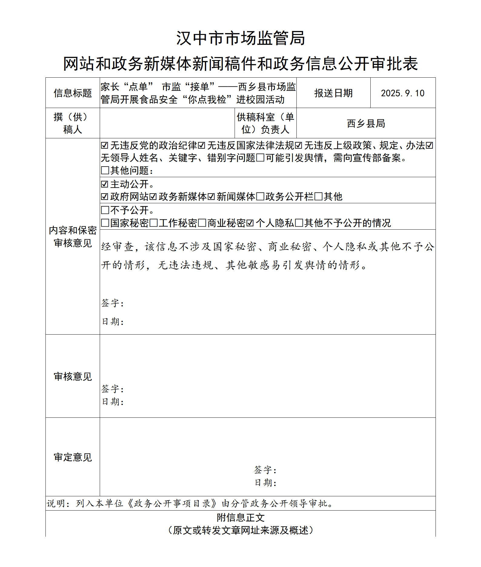 正值开学季,西乡县市场监管局开展食品安全“你点我检”进校园活动,活动先后在西乡县四河学校和西乡县第五中学,通过家长现场“点单”、监管人员现场快检、结果即时公示的方式,让校园食品安全“看得见、摸得着、信得过”。