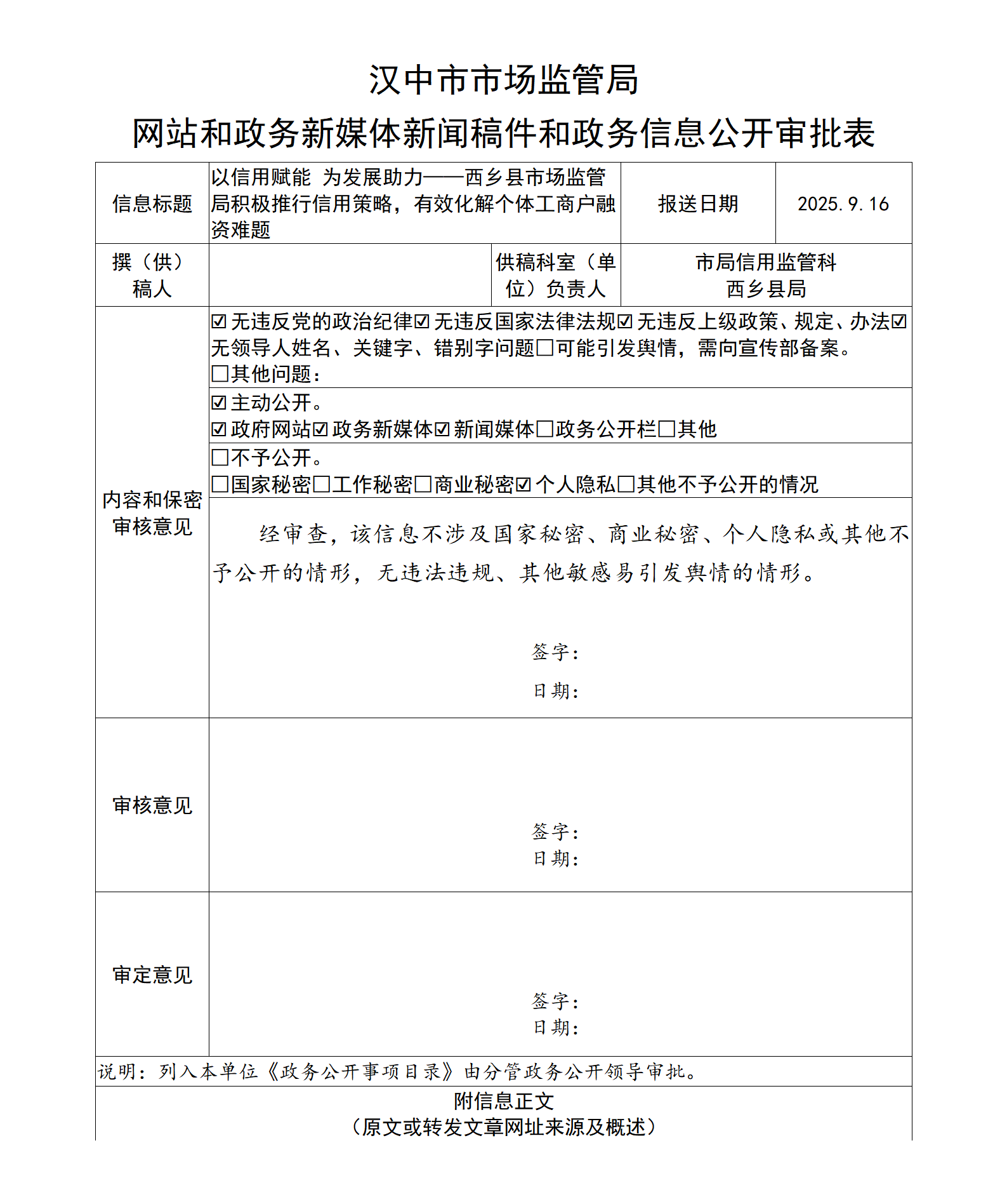 今年以来,西乡县市场监管局多措并举,全面加强对个体工商户的指导和帮扶力度,切实保障其合法权益,积极破解融资难题,充分激发信用所带来的新动能,为个体工商户实现高质量发展提供坚实的信用价值支撑。