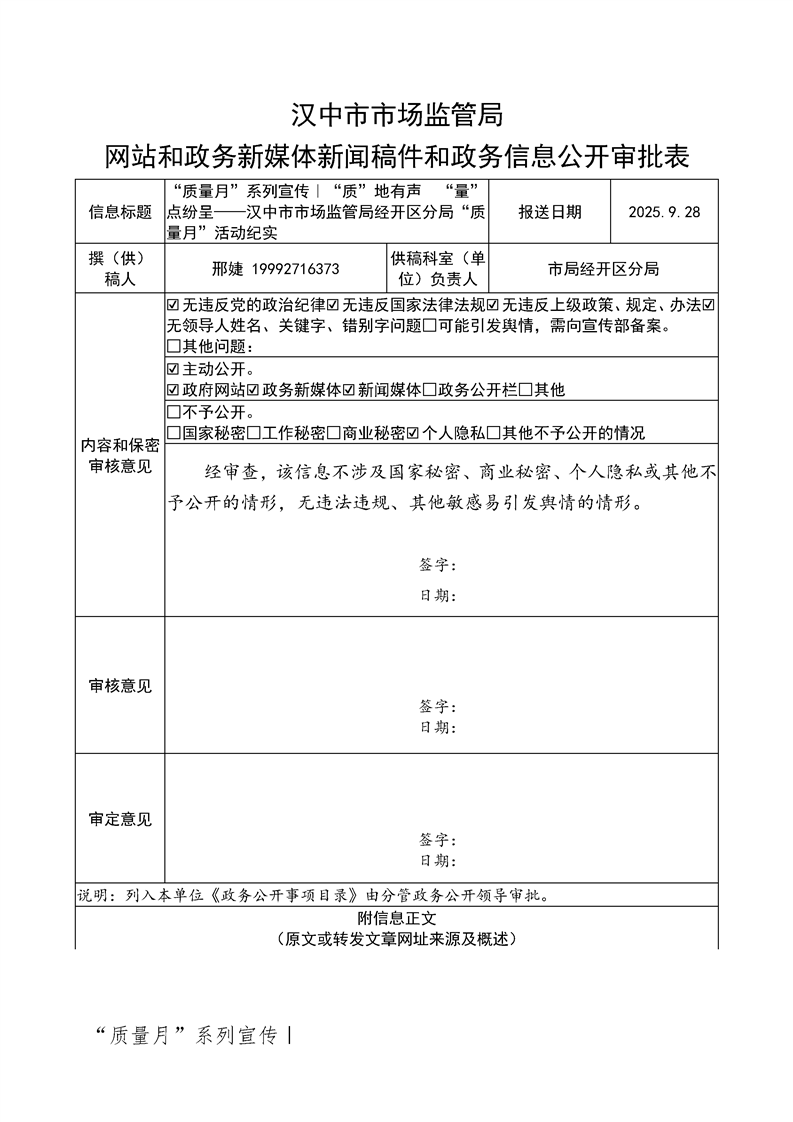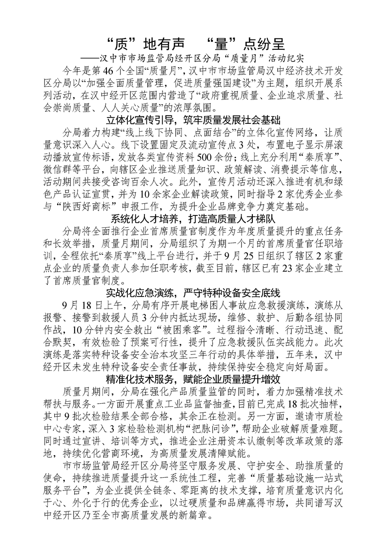 “质”地有声,“量”点纷呈——市场监管汉中经开区分局“质量月”活动纪实