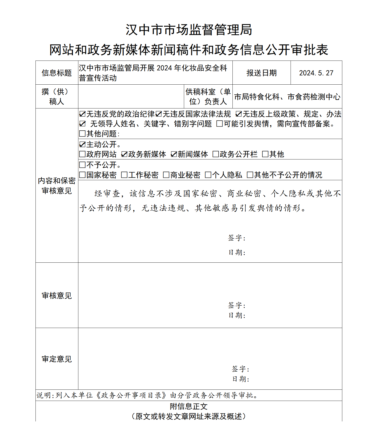 汉中市市场监管局开展2024年化妆品安全科普宣传活动