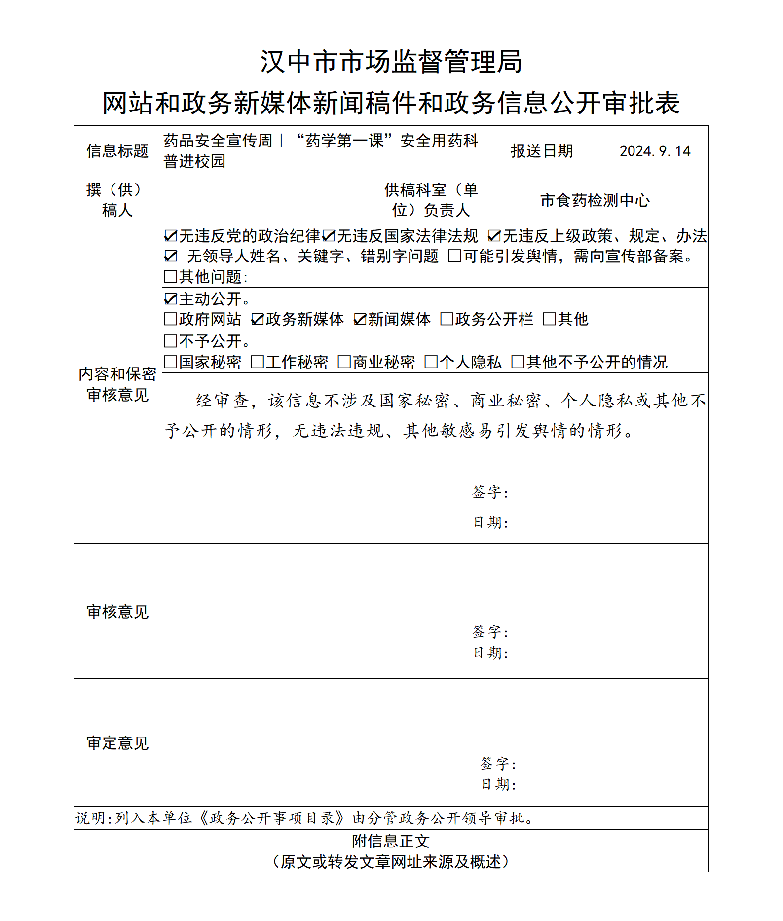 9月12日,汉中市食品药品监督检验检测中心(汉中市药品不良反应监测中心)联合汉中职业技术学院药学院开展新生入学大会暨“药学第一课”安全用药科普宣传进校园活动。