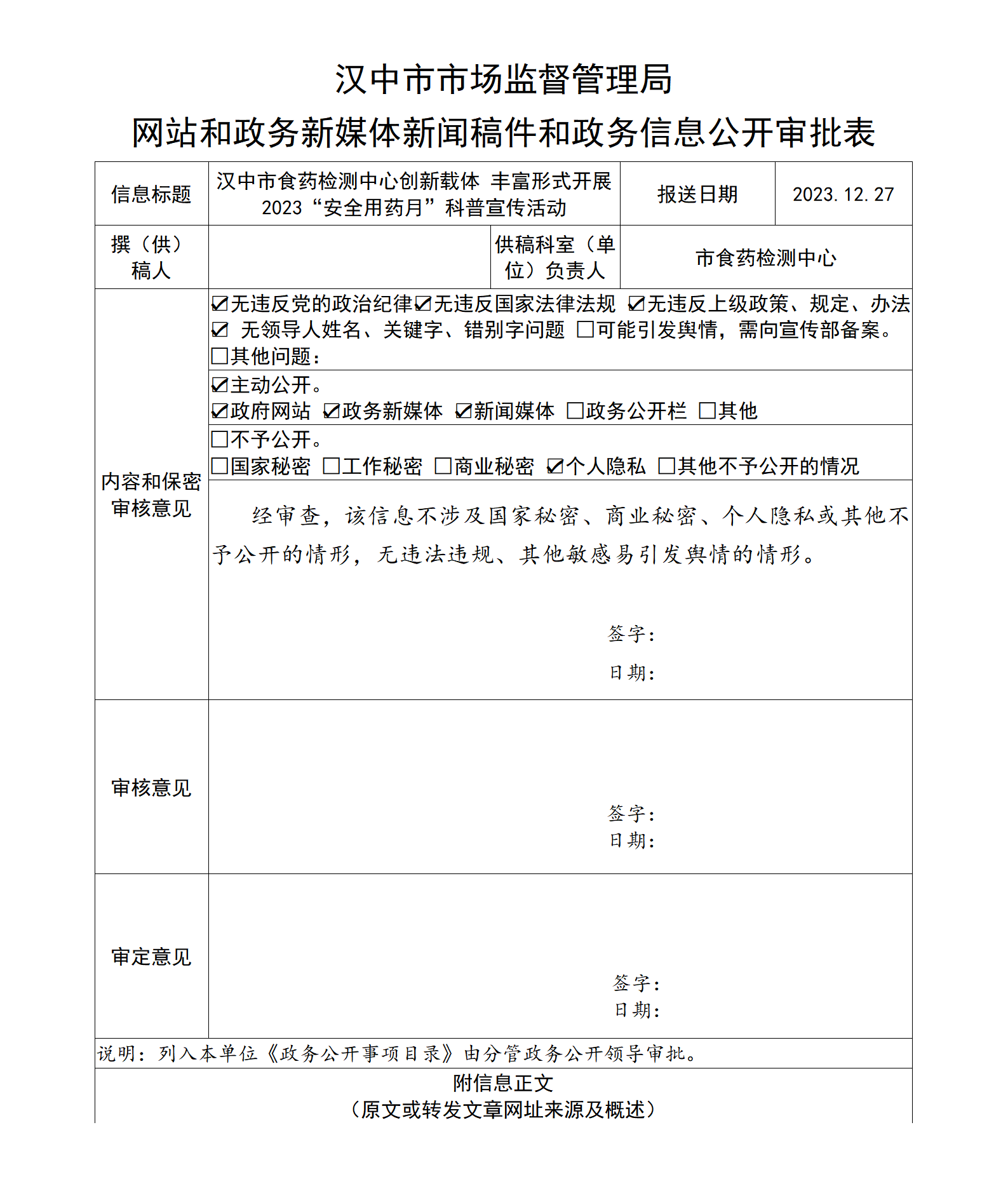 汉中市食药检测中心创新载体 丰富形式开展2023“全国安全用药月”科普宣传活动