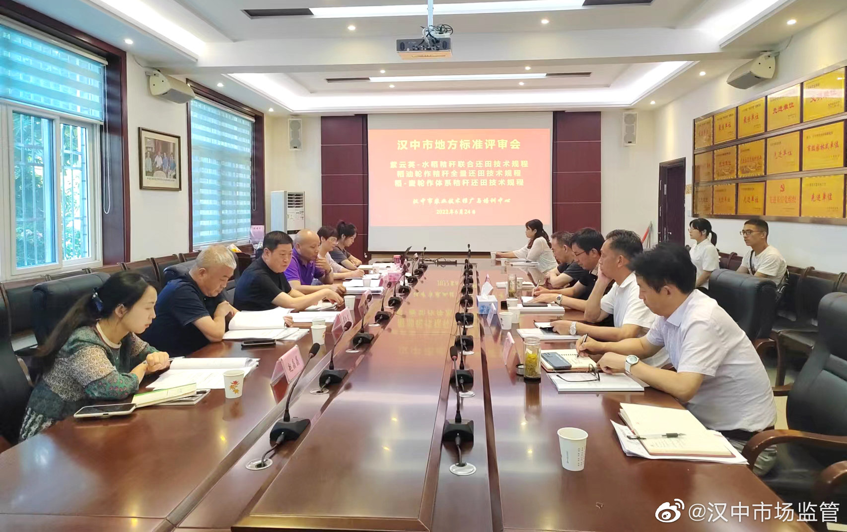6月24日,应汉中市农业技术推广与培训中心申请,汉中市市场监管局组织专家对该中心起草的汉中市地方标准《稻油轮作秸秆全量还田技术规程》《稻-麦轮作体系秸秆还田技术规程》《紫云英-水稻秸秆联合还田技术规程》进行了技术审查,经讨论,专家组一致同意上述标准通过审查。
