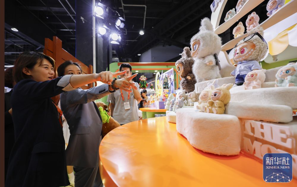 9月10日,观众在服贸会主题展区泡泡玛特展台前参观。新华社记者常能嘉摄
