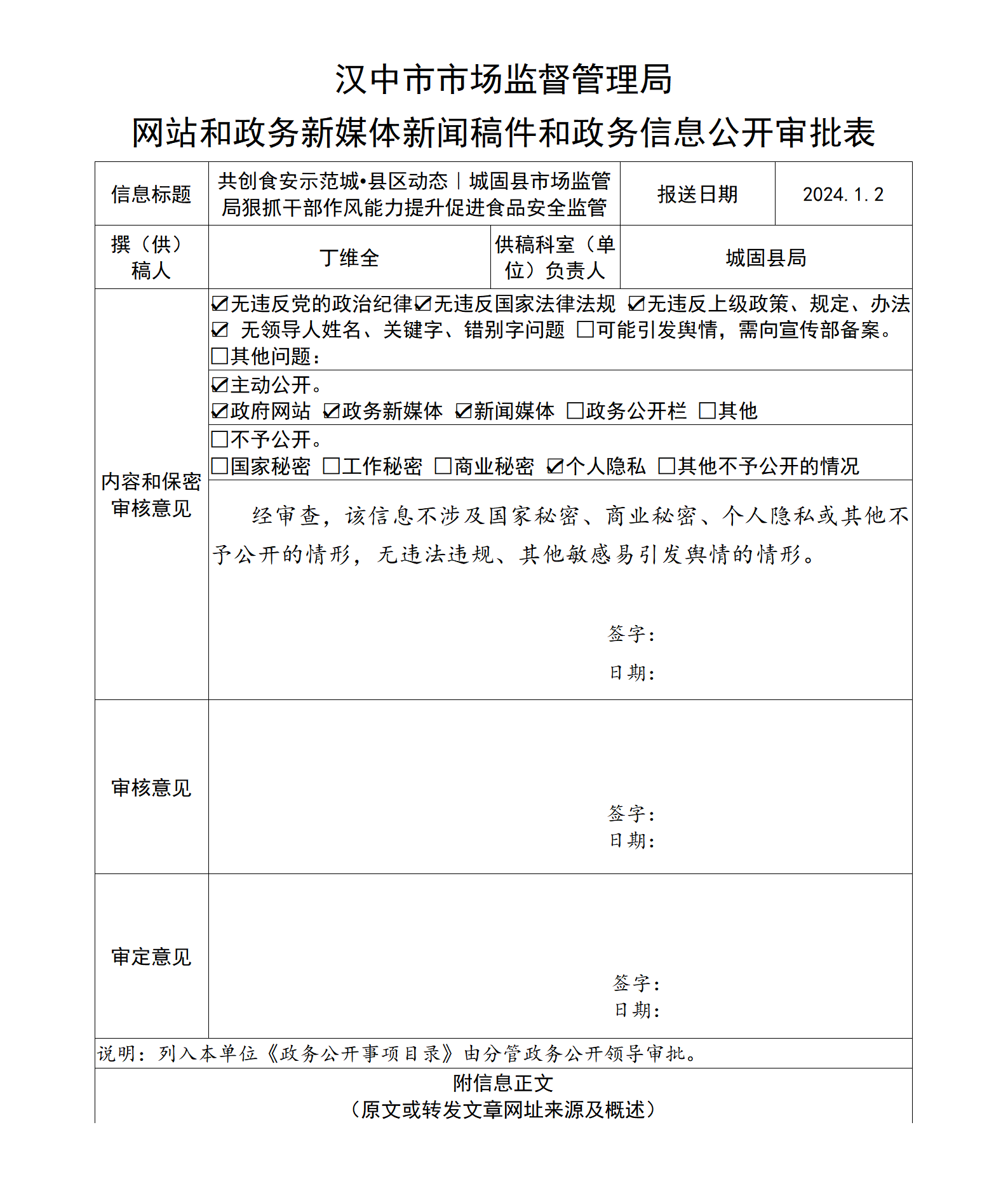 今年以来,城固县市场监督管理局立足市场监管主责主业,狠抓干部作风能力提升,扎实开展食品安全等领域群众身边腐败和作风问题专项整治和清爽市场建设,驰而不息抓作风、提效能、促发展,成功创建省级食品安全示范县,食品安全监管工作取得了良好成效。