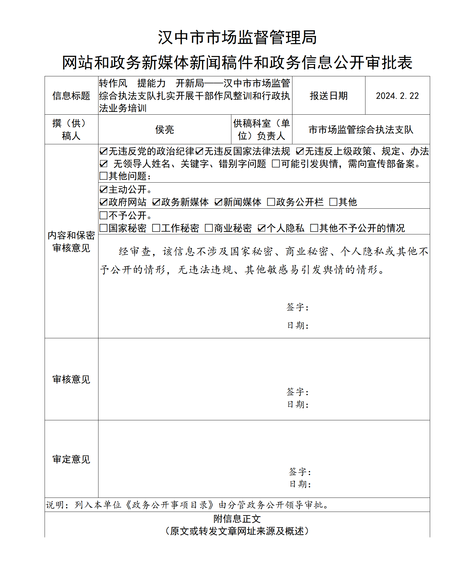 ——汉中市市场监管综合执法支队扎实开展干部作风整训和行政执法业务培训